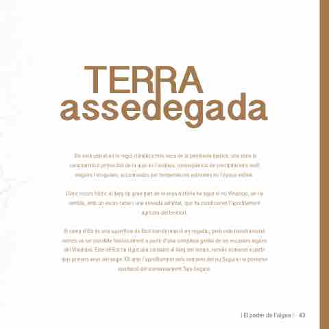 El camp d’Elx és una superfície de fàcil transformació en regadiu, però esta transformació només va ser possible històricament a partir d’una complexa gestió de les escasses aigües del Vinalopó. Este dèficit ha sigut una constant al llarg del temps, només esmenat a partir dels primers anys del segle XX amb l’aprofitament dels sobrants del riu Segura i la posterior aportació del transvasament Tajo-Segura.