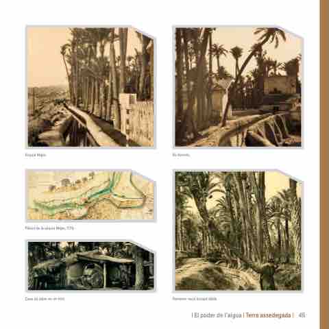 Séquia Major. Els Xorrets. Plànol de la séquia Major, 1776. Casa de labor en un hort. Palmerer recol·lectant dàtils. | El poder de l’aigua | Terra assedegada | 45