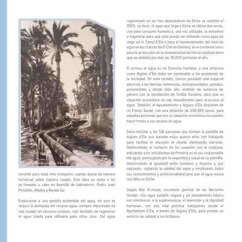 Según Ban Ki-moon, secretario general de las Naciones Unidas: «Un agua potable segura y un saneamiento básico son intrínsecos a la supervivencia, el bienestar y la dignidad humana», con esa vital premisa trabajamos desde el Ajuntament d’Elx, a través de Aigües d’Elx, para prestar un servicio de calidad a los ilicitanos.