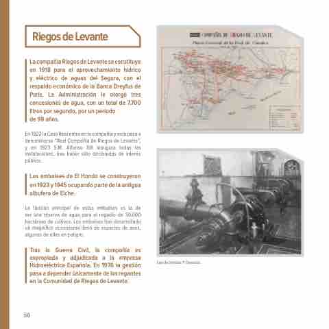 Tras la Guerra Civil, la compañía es expropiada y adjudicada a la empresa Hidroeléctrica Española. En 1976 la gestión pasa a depender únicamente de los regantes en la Comunidad de Riegos de Levante.