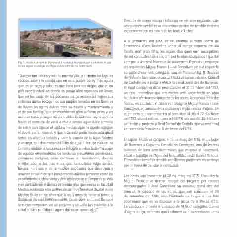 A la primavera del 1782, es va informar el bisbe Tormo de l’existència d’uns brolladors sobre el marge esquerre del riu Tarafa, molt prop d’Asp, les aigües dels quals eren susceptibles de ser conduïdes fins a Elx, tant per la seua abundància i qualitat com per la ubicació favorable del naixement. El prelat va emplaçar els arquitectes Miguel Francia i José Gonzálvez per a la inspecció conjunta d’eixa font, coneguda com de Barrenas (fig. 1). Després de l’informe favorable, el capítol il·licità va cursar petició al Consell de Castella per a portar a efecte la canalització des de Barrenas. El Reial Consell va dictar providències el 21 de febrer del 1783, en què decretava que arquitectes amb experiència en obra hidràulica efectuaren el projecte de les obres. A proposta del bisbe Tormo, els capitulars il·licitans van designar Miguel Francia i José Gonzálvez, encomanant-los el disseny i el pla director d’obres. En el projecte que van presentar al consistori il·licità el 22 d’octubre del 1783, el cost estimat pujava a 908 710 rals de billó. Els il·licitans van instar el projecte al Reial Consell de Castella, que va emetre el seu veredicte favorable el 5 de febrer del 1784.